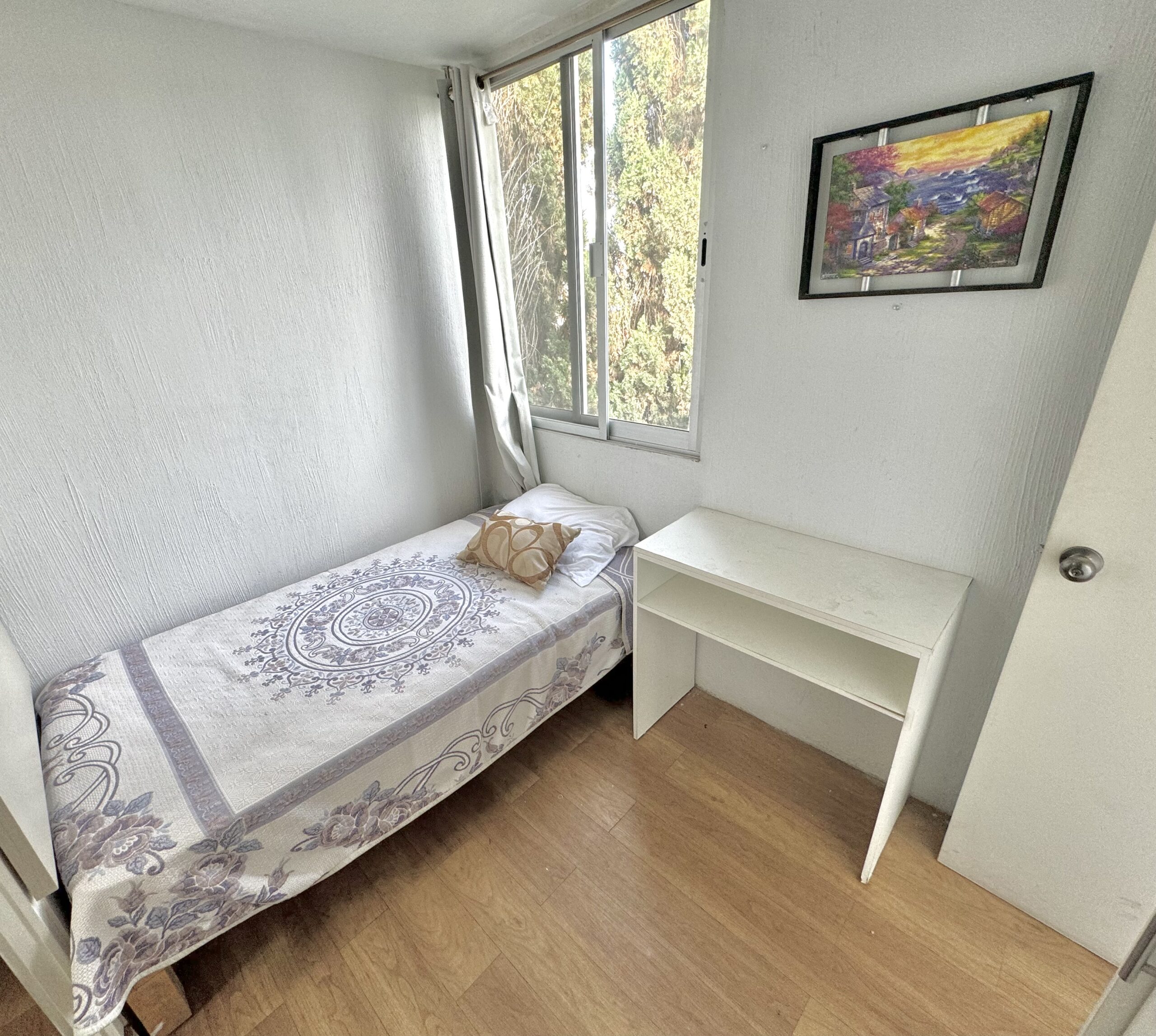• Cama Matrimonial: Disfruta de un descanso reparador en una amplia y practiva cama individual, perfecta para recargar energías después de un día explorando la ciudad.